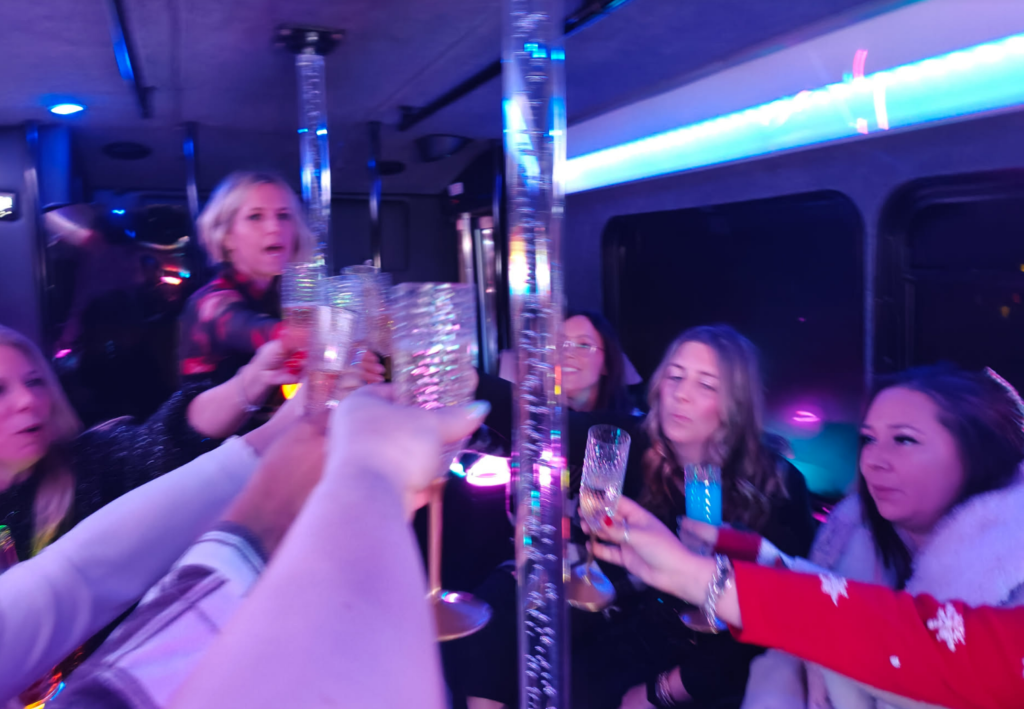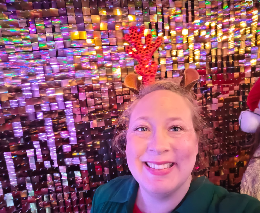 They rented a party bus for us, had little charcuterie boxes that were adorably decorated, and we toasted with champagne to get the night rolling. We stopped at three ultra festive Jingle Bars, each looked perfectly like holiday spirit “threw up” on them! Tinsel, check, Glitter, check, holiday lights everywhere, double check. At the end of the evening we were able to go back to the house and dance to music, sing along and that’s when I got to cuddle with little Snoop who wanted my attention.